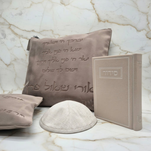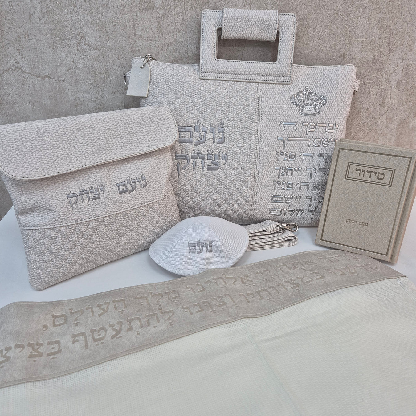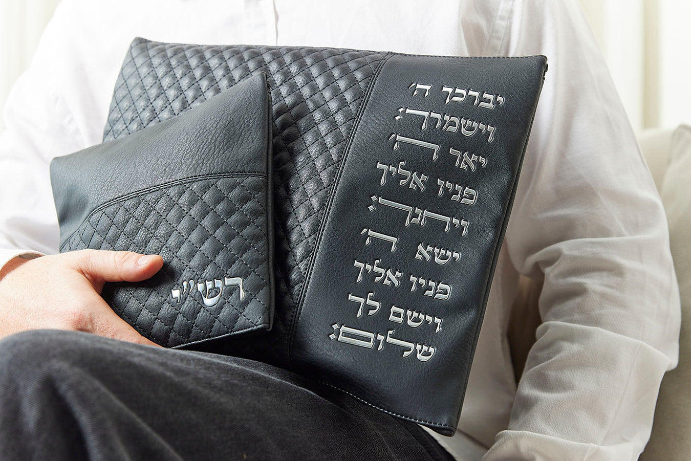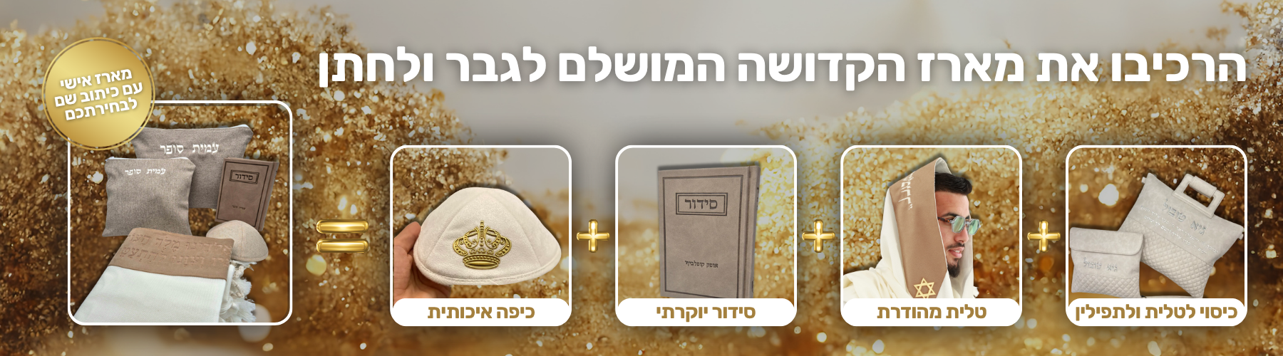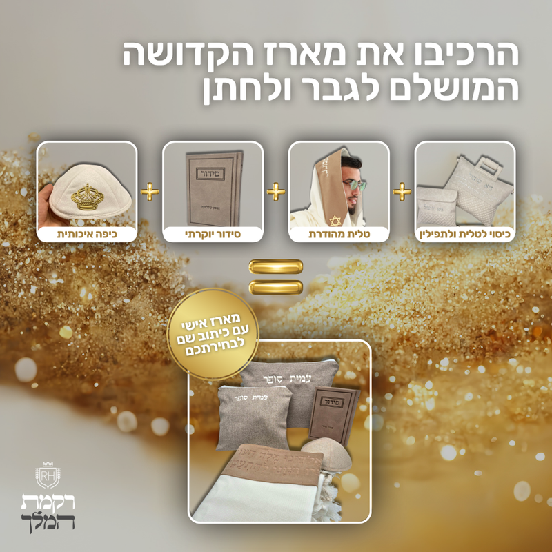 בקרמת המלך אנו מצטיינים ביצירת נרתיקים אישיים לתפילין וטלית מעוטרים בשמות, המבטיחים מגע ייחודי לפריטי קודש אלו. הקולקציה שלנו כוללת גם נרתיקים מעוצבים בקפידה לחתנים ולערכות בר מצווה, טליתות צמר יוקרתיות המוסיפות נופך של אלגנטיות לחוויית התפילה שלכם, וכן סידורי תהילים עם טבעת השם והכל מהספקים הטובים והאיכותיים בישראל.