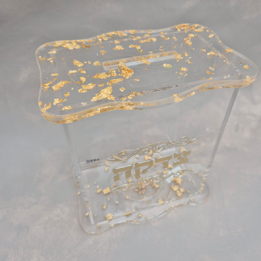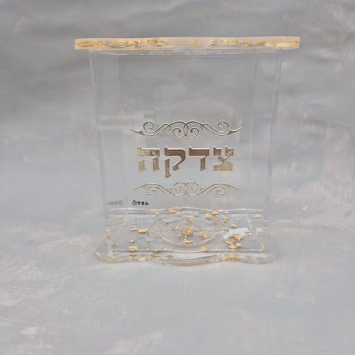 קופת צדקה עשויה מפרספקט שקוף וזהב