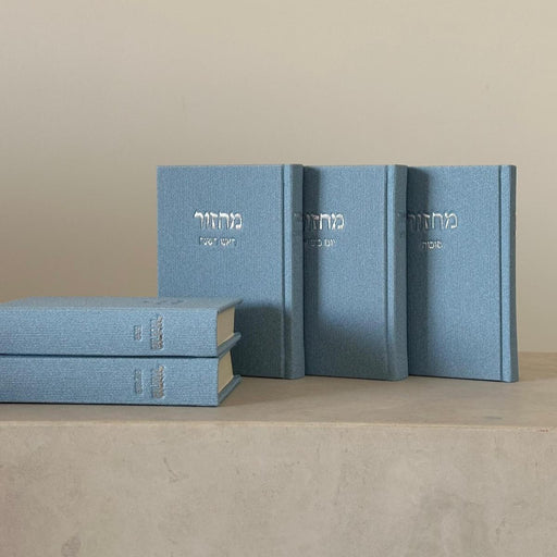 סט מחזורים בצבע תכלת מיוחד נוסח עדות המזרח בצבע תכלת מבד איכותי ומיוחד פסח | ראש השנה | כיפור | סוכות | שבועות מגיע עם הטבעת השם בצבע כסף