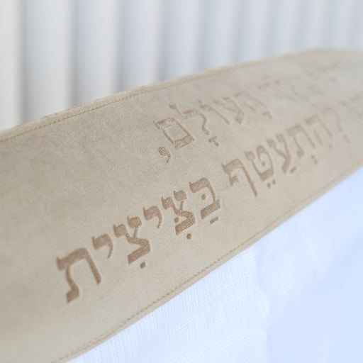 טלית צמר Premium דגם יברכך בז' לבן טלית צמר רחלים בית יוסף 100% צמר טהור, מדגם דוד העשויה מבד אווריריבד מיוחד המונע החלקה.על הטלית עטרה מבד פשתן מי...