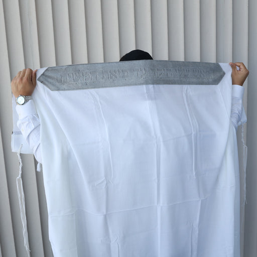 טלית סילבר טלית מהודרת מצמר רחלים 100% צמר עם פסים כסף לאורך הטלית על הטלית תפורה עטרה מיוחדת מאבני כסף
