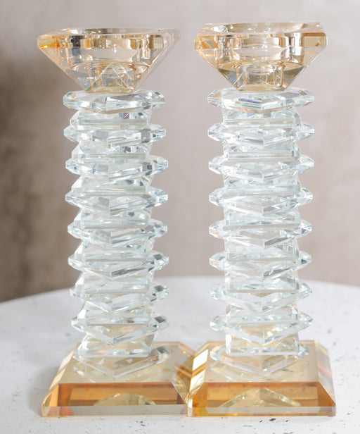 פמוטי קריסטל שילוב של צבע זהב ושקוף גובה 16.5 ס''מ