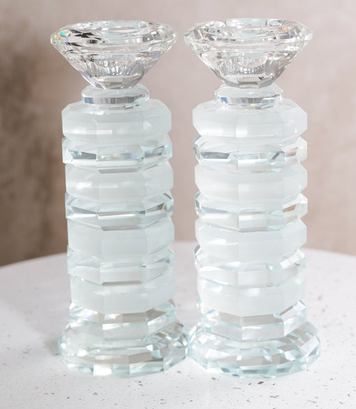 פמוטי קריסטל שילוב של זכוכית חלבית ושקוף גובה 16.5 ס''מ