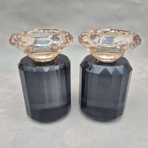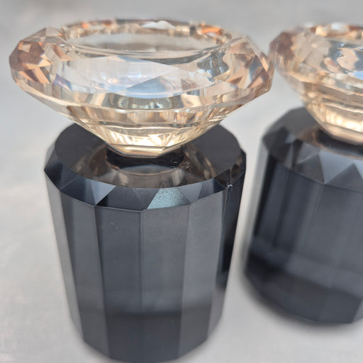פמוטי קריסטל צבע שחור קנים בזהב גובה 10 ס''מ