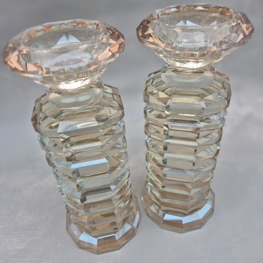 זוג פמוטי זכוכית קריסטל מהודרים גובה הפמוטים 24 ס''מ