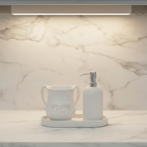 סבוניה נטלה ומגש בצבע לבן אבן פסים מיוחד עשוי מפוליריזן קשיח ואיכותי
