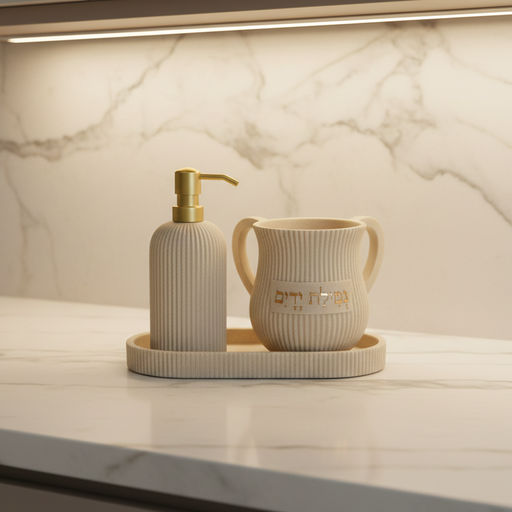 נטלה מהודרת מפוליריזן צבע אבן עם כיתוב על נטילת ידיים , שפע , ברכה גובה הנטלה 14 ס''מ