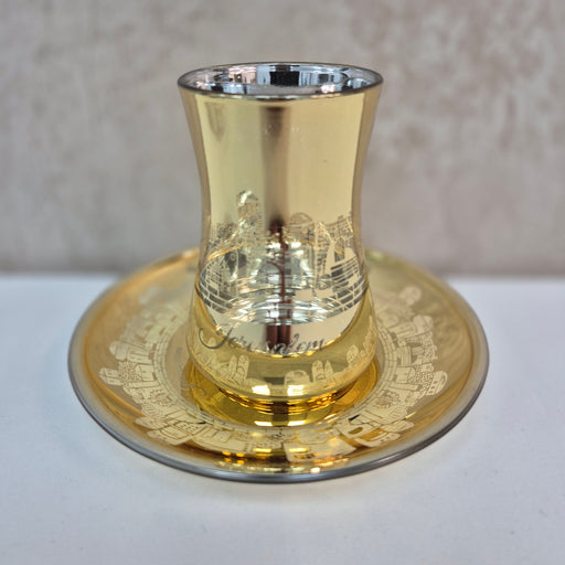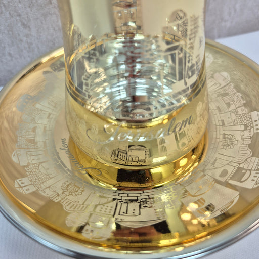 כוס קידוש מזכוכית ציפוי זהב דגם ירושלים *לשטיפה ידנית לא במדיח