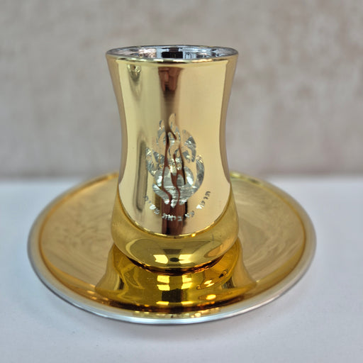 כוס קידוש מזכוכית ציפוי זהב דגם האש שלי *לשטיפה ידנית לא במדיח