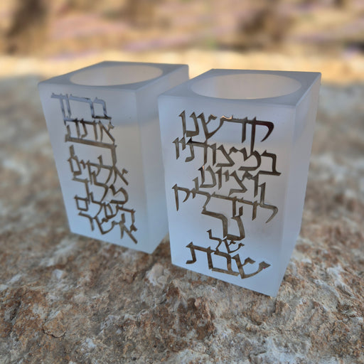 זוג פמוטים לשבת מקריסטל איכותי וברכת הדלקת נרות מפלקטת ברזל גובה הפמוטים 8 ס''מ