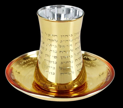 כוס קידוש מזכוכית ציפוי זהב דגם בבא סאלי *לשטיפה ידנית לא במדיח