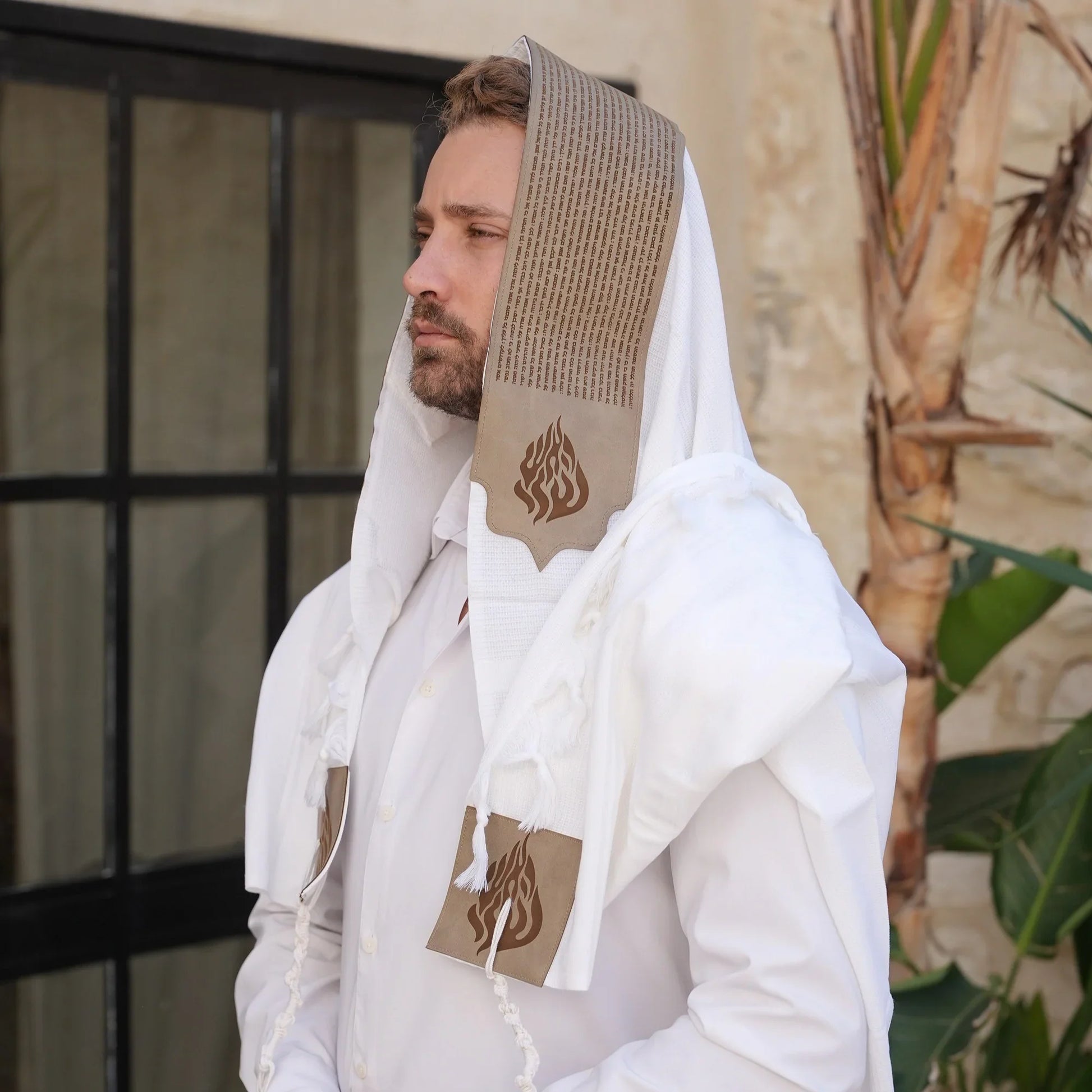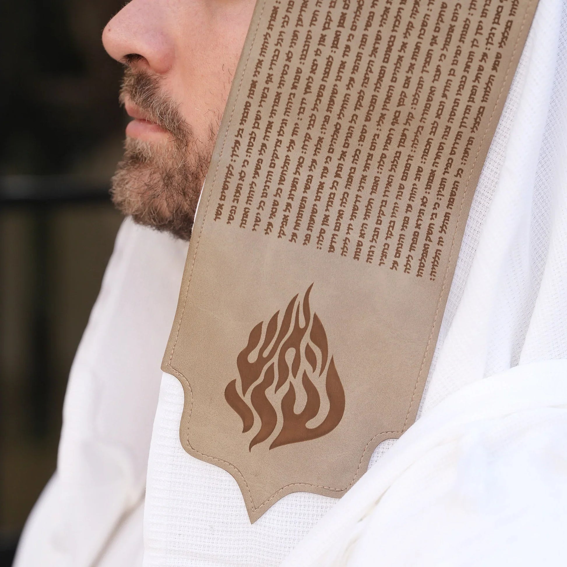 על הטלית עטרה מדמוי עור יוקרתי איכותי במיוחד בצבע חום"תיקון הכללי ".