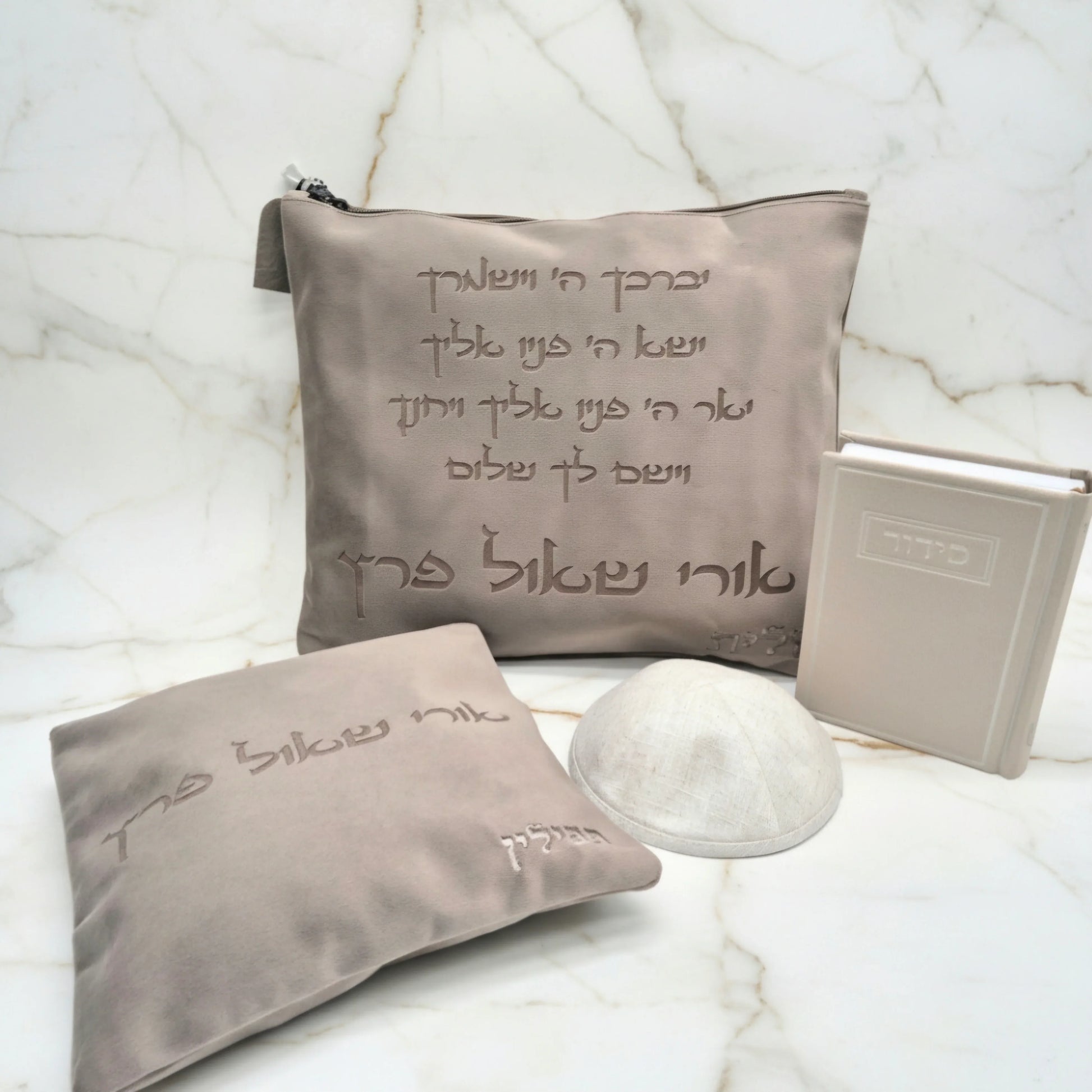 סט כיסויים מקטיפה איכותי מאוד עם השם בחיתוך לייזר וברכת כהנים