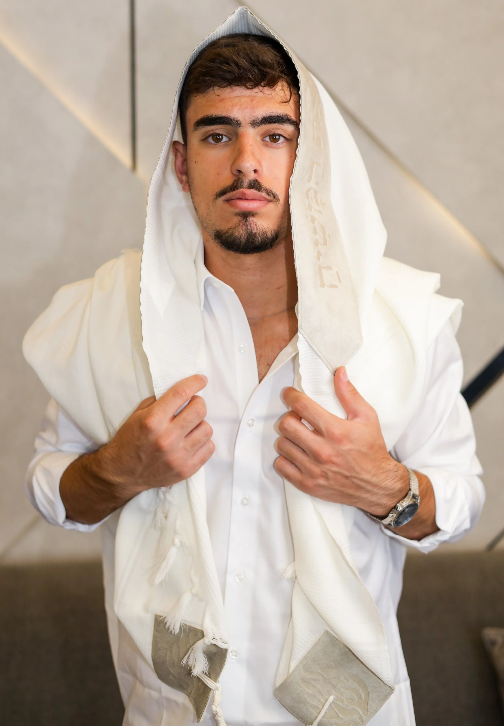טלית צמר רחלים בית יוסף 100% צמר טהור, העשויה מבד אוורירי המונע החלקה