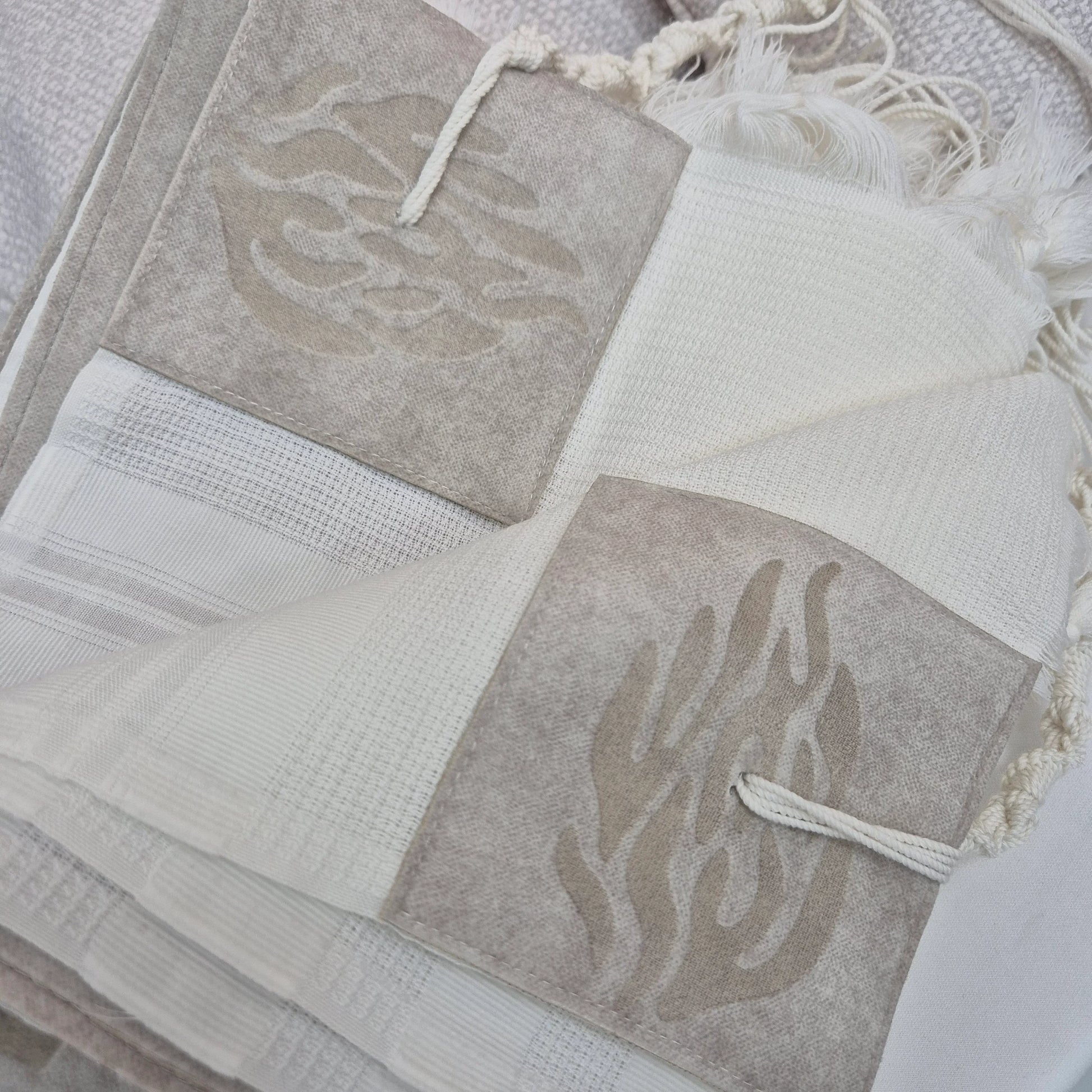 תיק נשיאה לטלית ולתפילין מדמוי עור איכותי צבע בז' עם רקמת האש שלי בצבע בז' כולל רקמת השם ושם משפחה