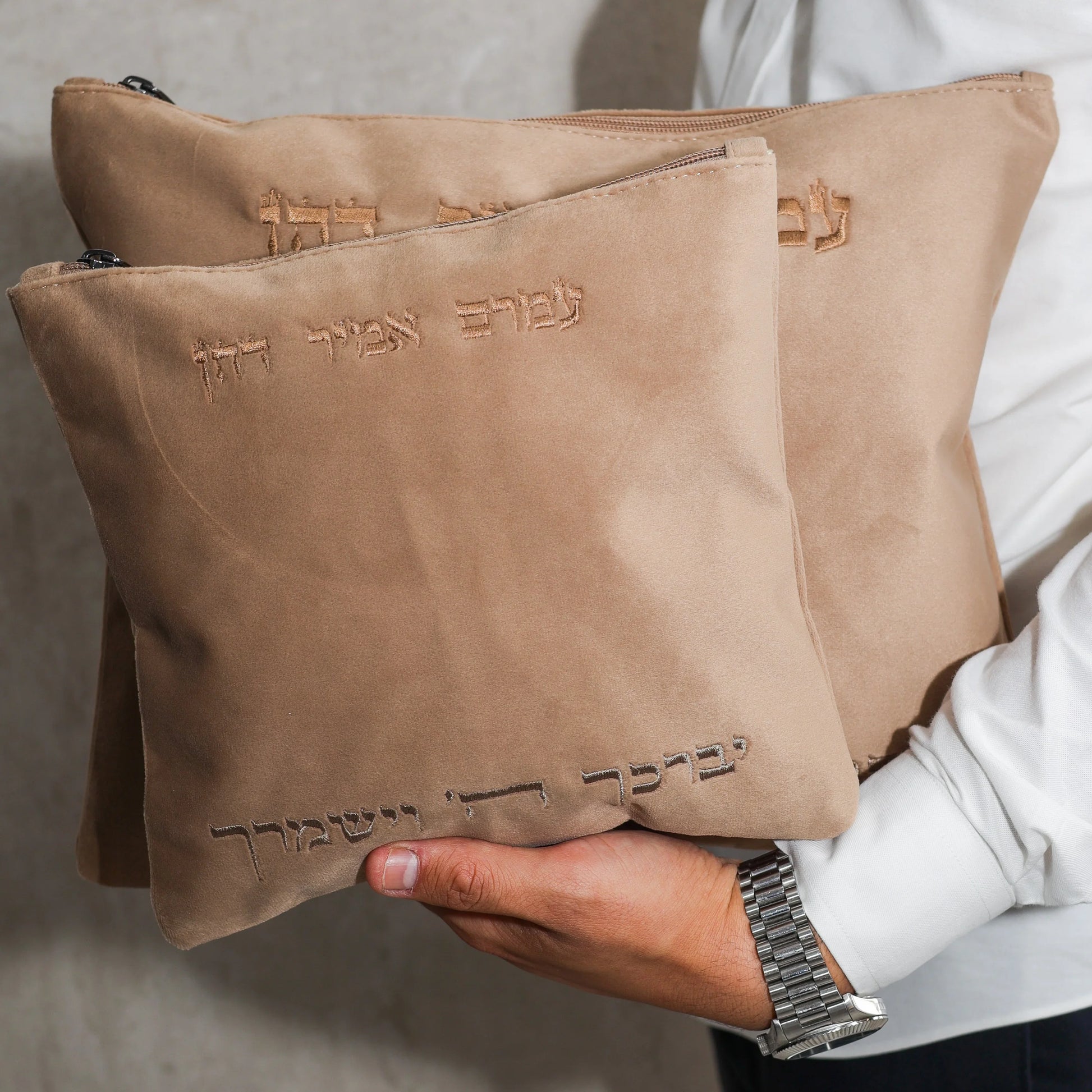 סט כיסויים לטלית ולתפילין מבד קטיפה | צבע חום